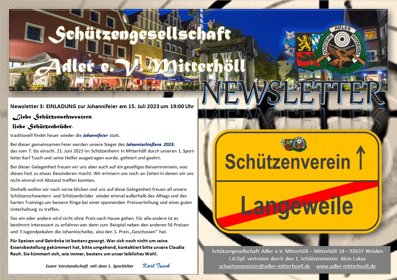 Liebe Schützinnen und Schützen der SG Mitterhöll.